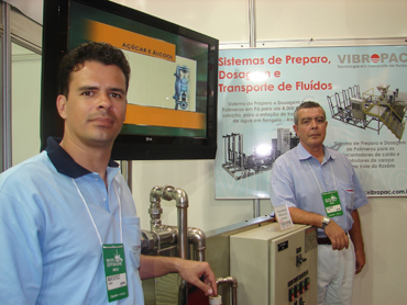 Entre os equipamentos expostos no stand da empresa estavam as bombas de transferência também acionadas por ar comprimido, preparadores de polímeros, skids de dosagem e as bombas centrífugas de elevado hedge. “Representamos a Sundyne no fornecimento de bombas centrífugas, e a Milton Roy para as bombas dosadoras”, lembra Mauro.